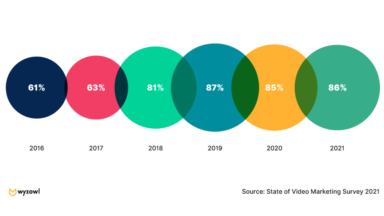 下の図がマーケティングのツールとして動画を利用しているマーケターの割合の推移です。年々増加していることがわかります。